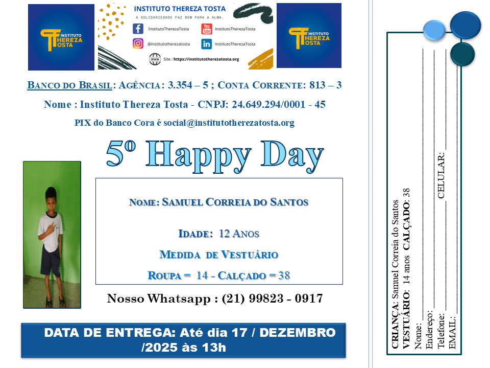 Faça uma criança sorrir com roupa e calçado novo. Se você mora longe e quiser enviar pelo SEDEX esteja à vontade, ou se quiser contribuir com oferta em dinheiro, temos meios especiais abaixo. Veja os nomes de nossas crianças abaixo e a foto dela também.
